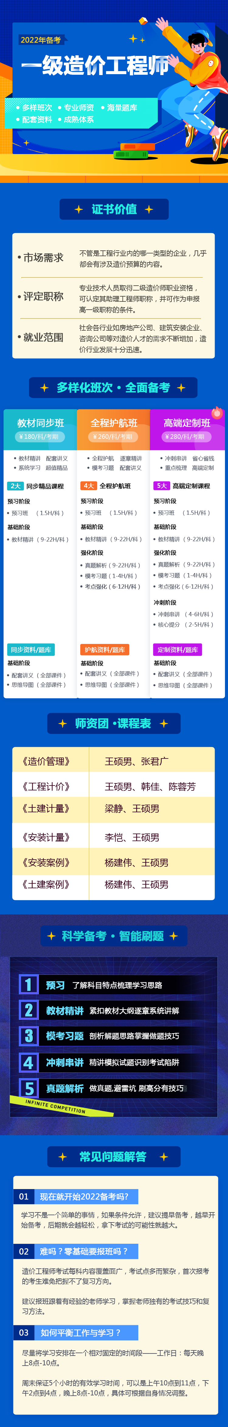 国家注册建造师、安全工程师、监理工程师,造价工程师实际参与包括天安门城楼安全性鉴定与加固等国内外一线施工现场的项目管理工作,十余年积累了丰富的现场管理工作经验和工程类执业资格考试经验。善于结合现场场景,总结归纳口诀,活学活用的授课方式,深受广大学员的喜爱。曾多次与中建、中铁、国网、华能、中交等企事业单位合作进行内训面授课程,得到广大学员和企业领导的一致好评。